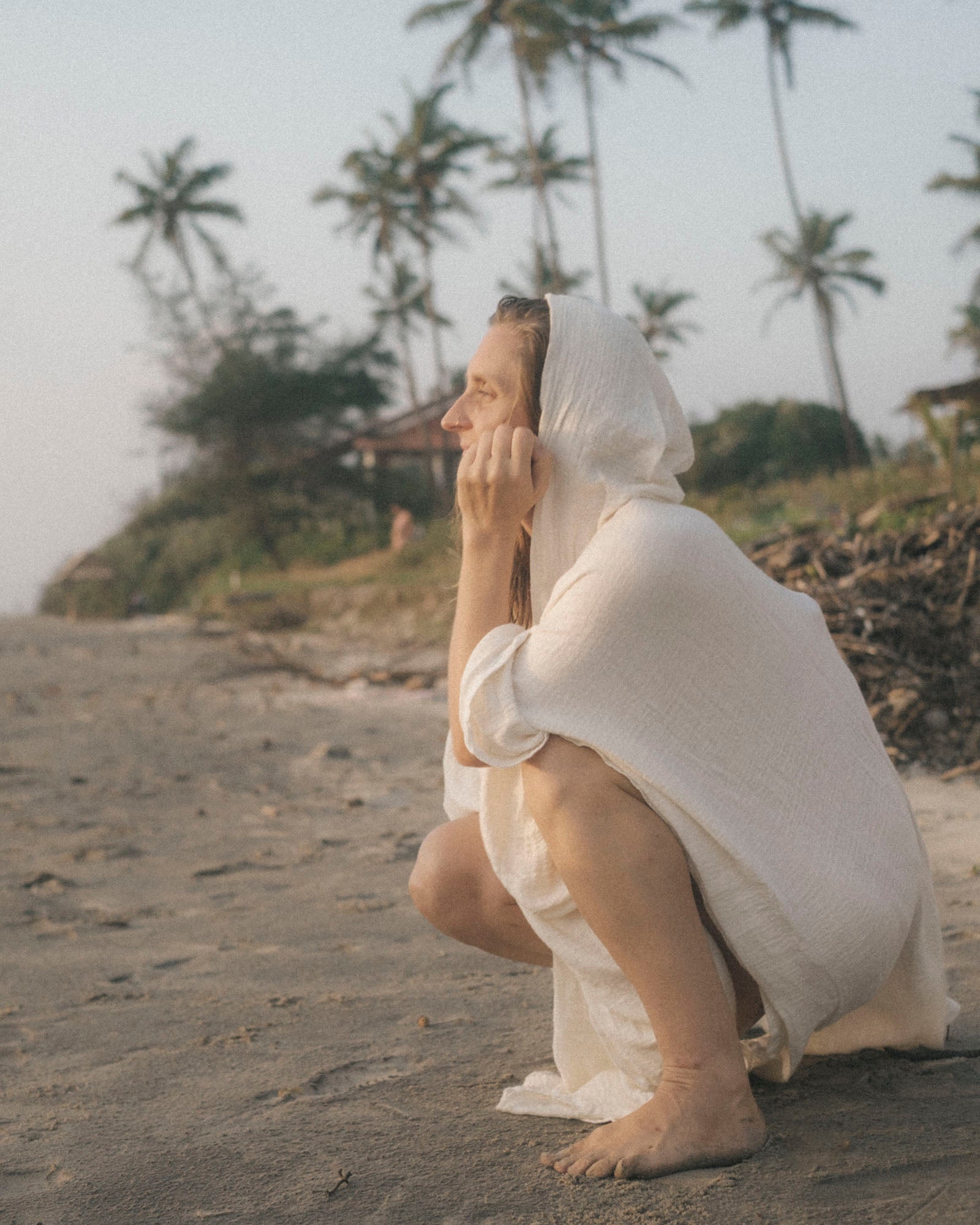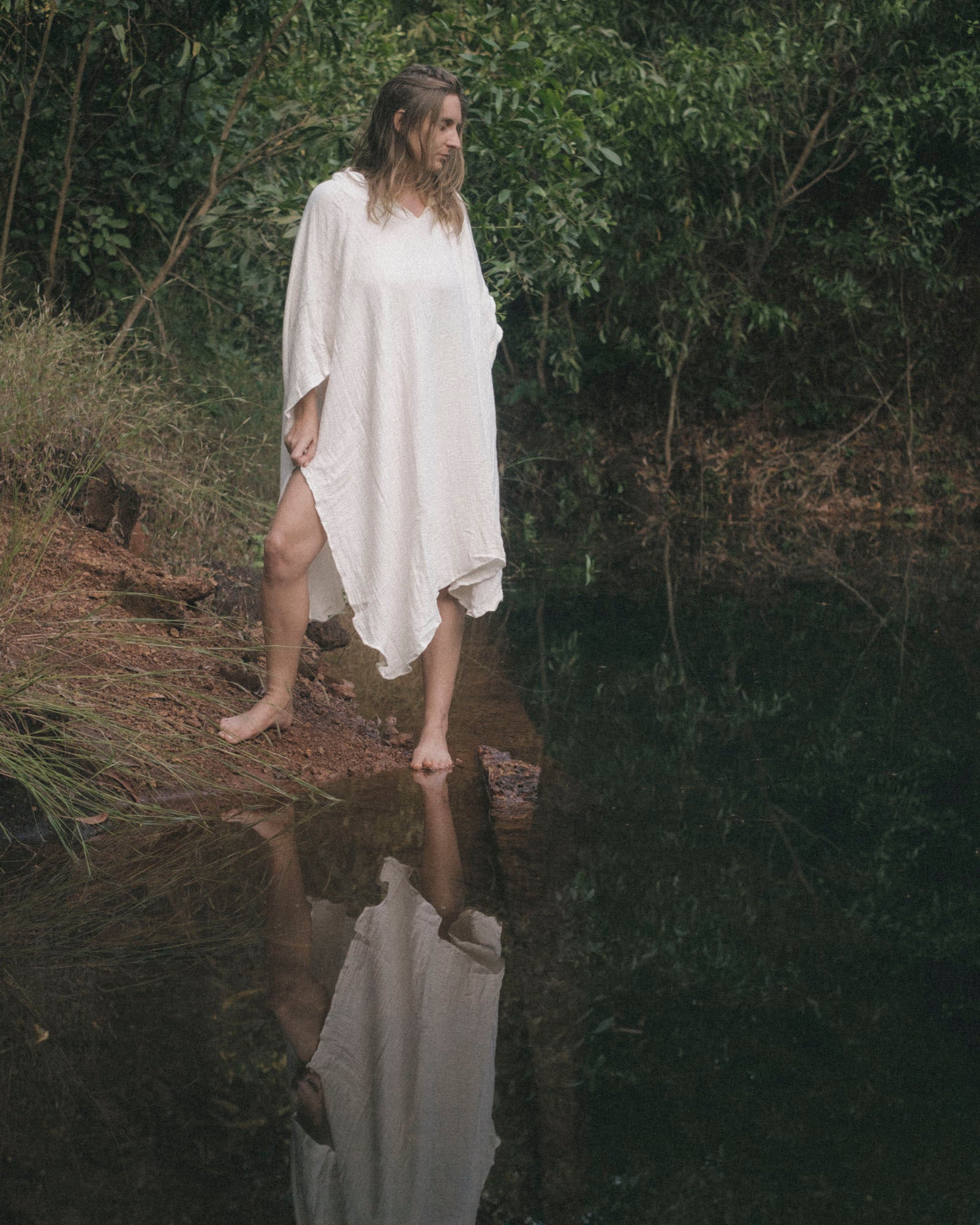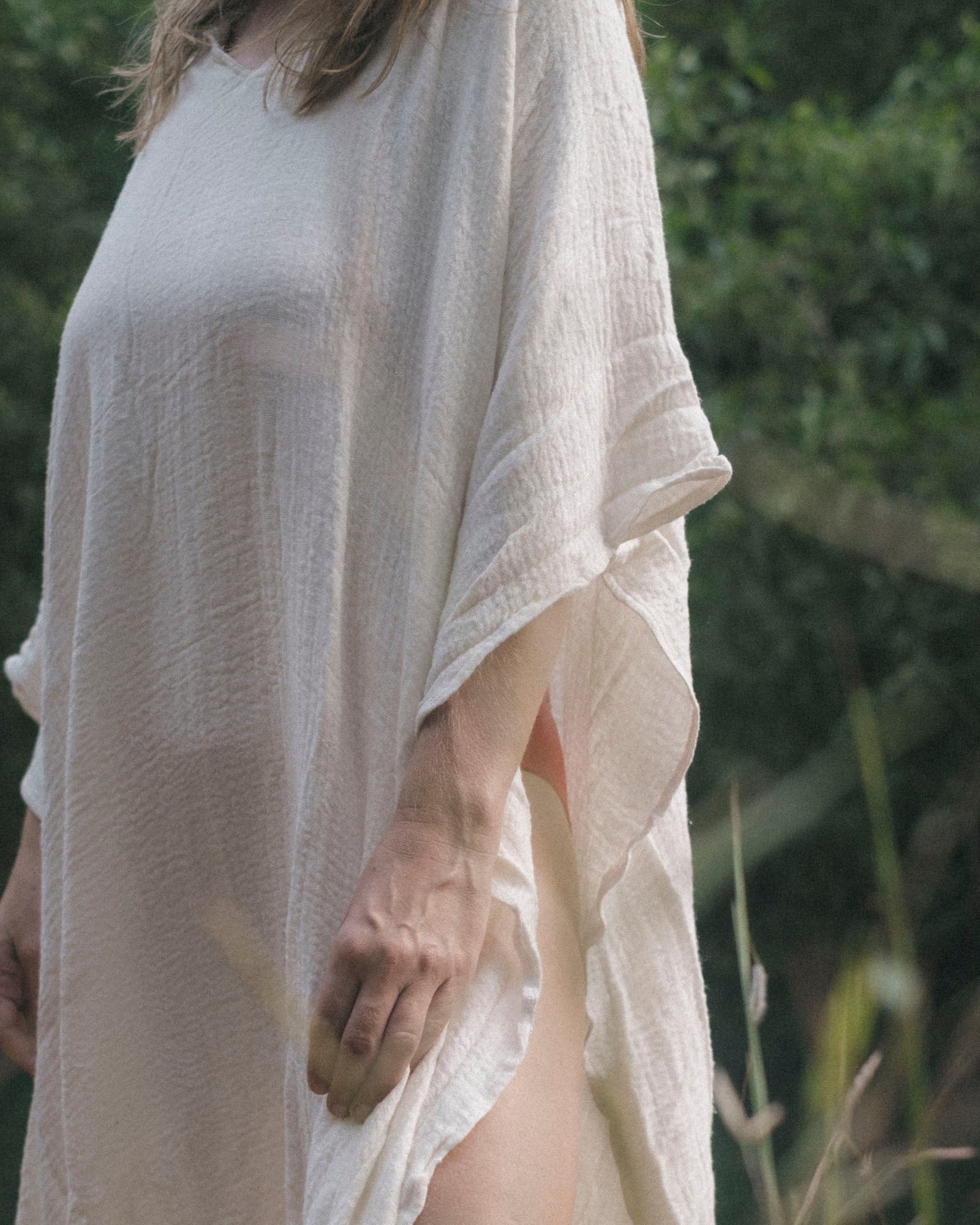 Cool, calm, and easy as the tide. The Junas Kaftan moves like air and light — part poncho, part robe, all ease. Woven from a soft bamboo-cotton blend, it’s perfect for beach mornings, post-surf evenings, or quiet hours in between.