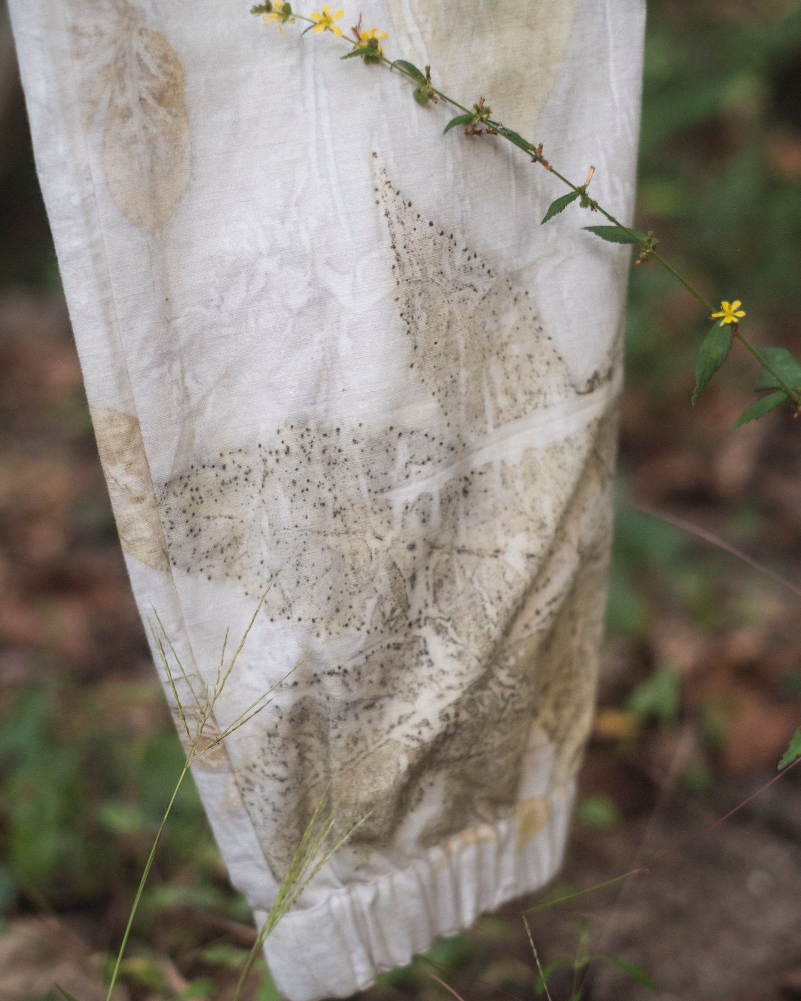 - Eco-printed with locally foraged leaves