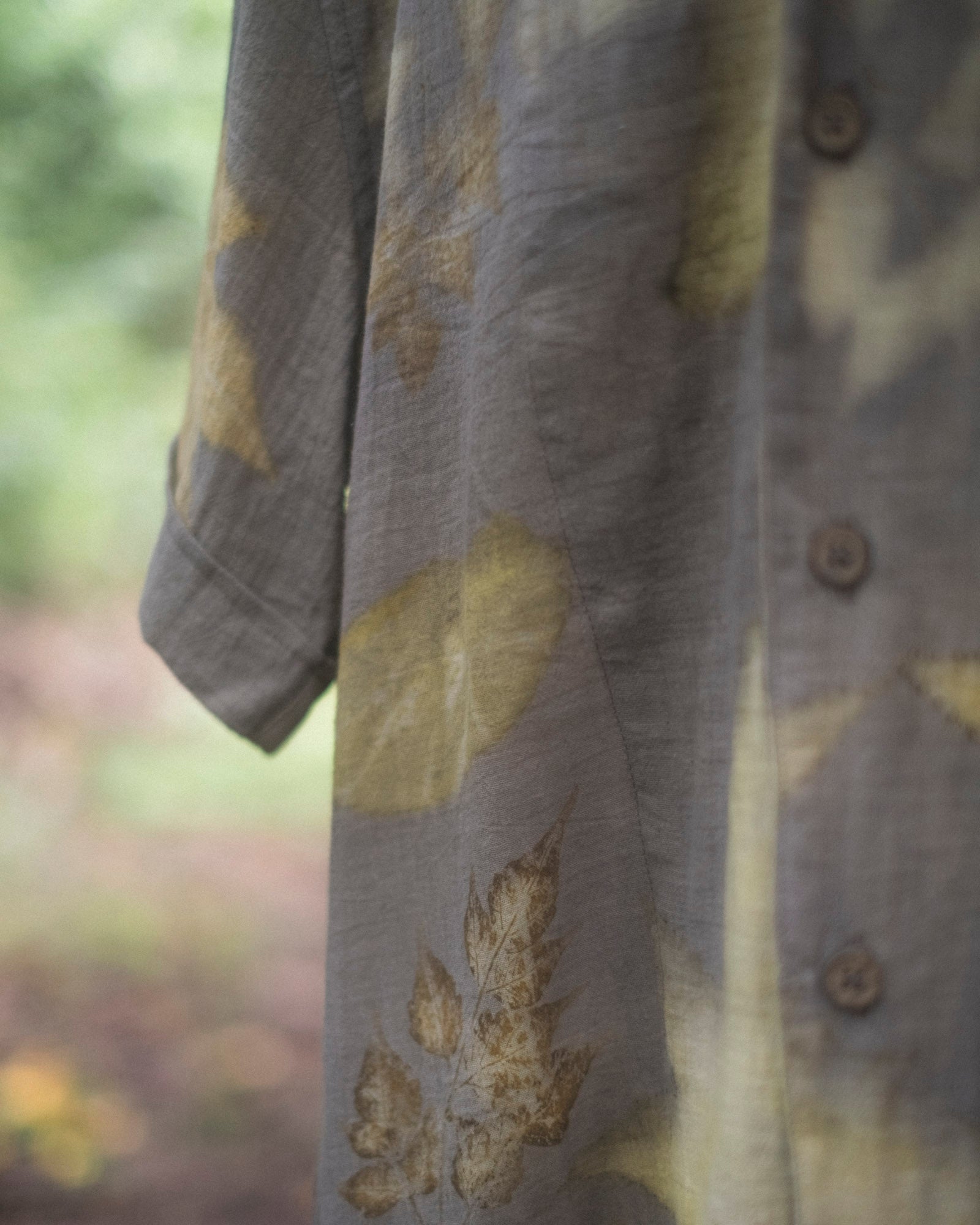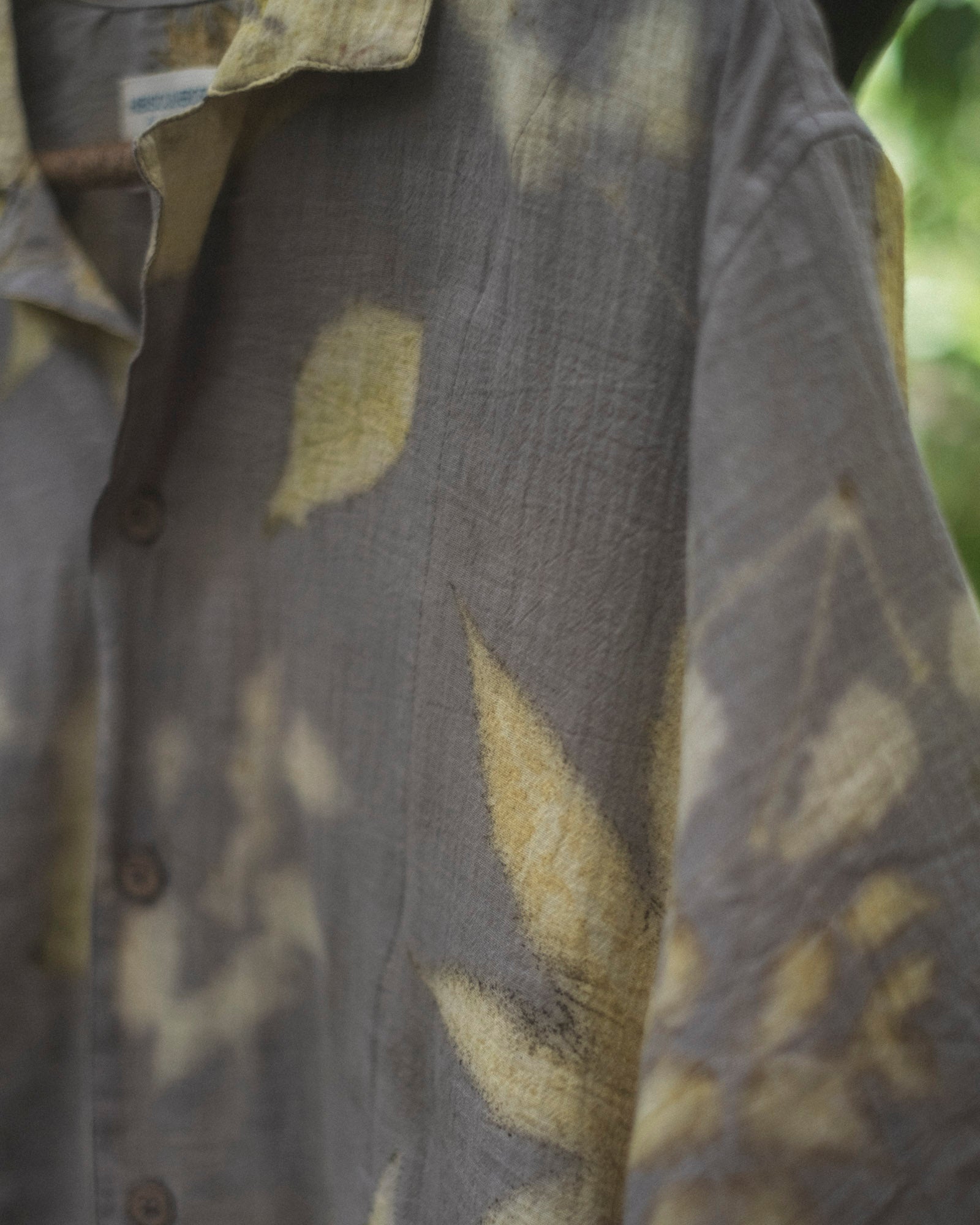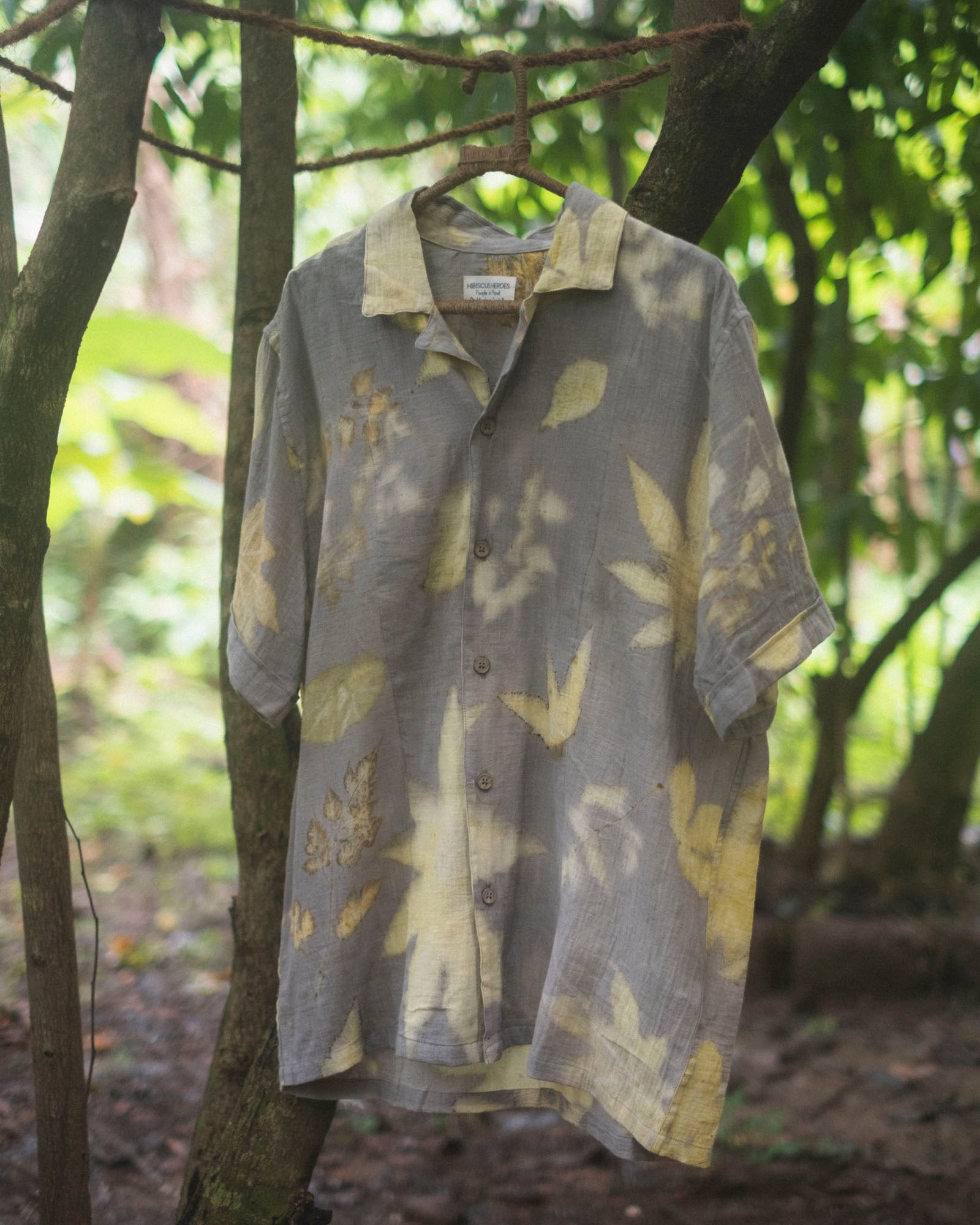 Printed by nature itself. The Botanical Shirt is eco-printed with locally foraged leaves and dyed naturally with myrobalan, creating calm gray hues that shift gently in light. No two are ever alike, with each carrying the quiet signature of its origin. This piece is part of our Hibiscus Heroes Collection, shaped by natural dyes and thoughtful processes.