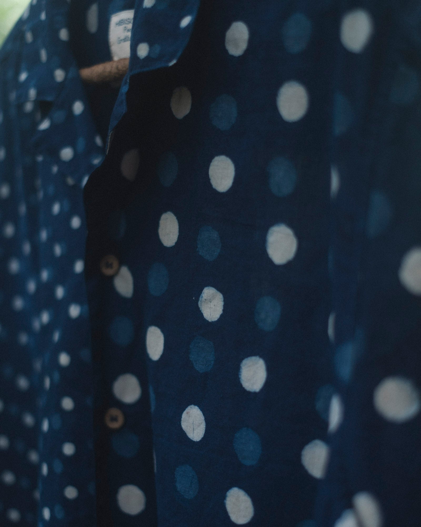 Soft blue, scattered light. Dabu-printed dots recall night skies and gentle drift. Airy, effortless, and full of subtle charm.