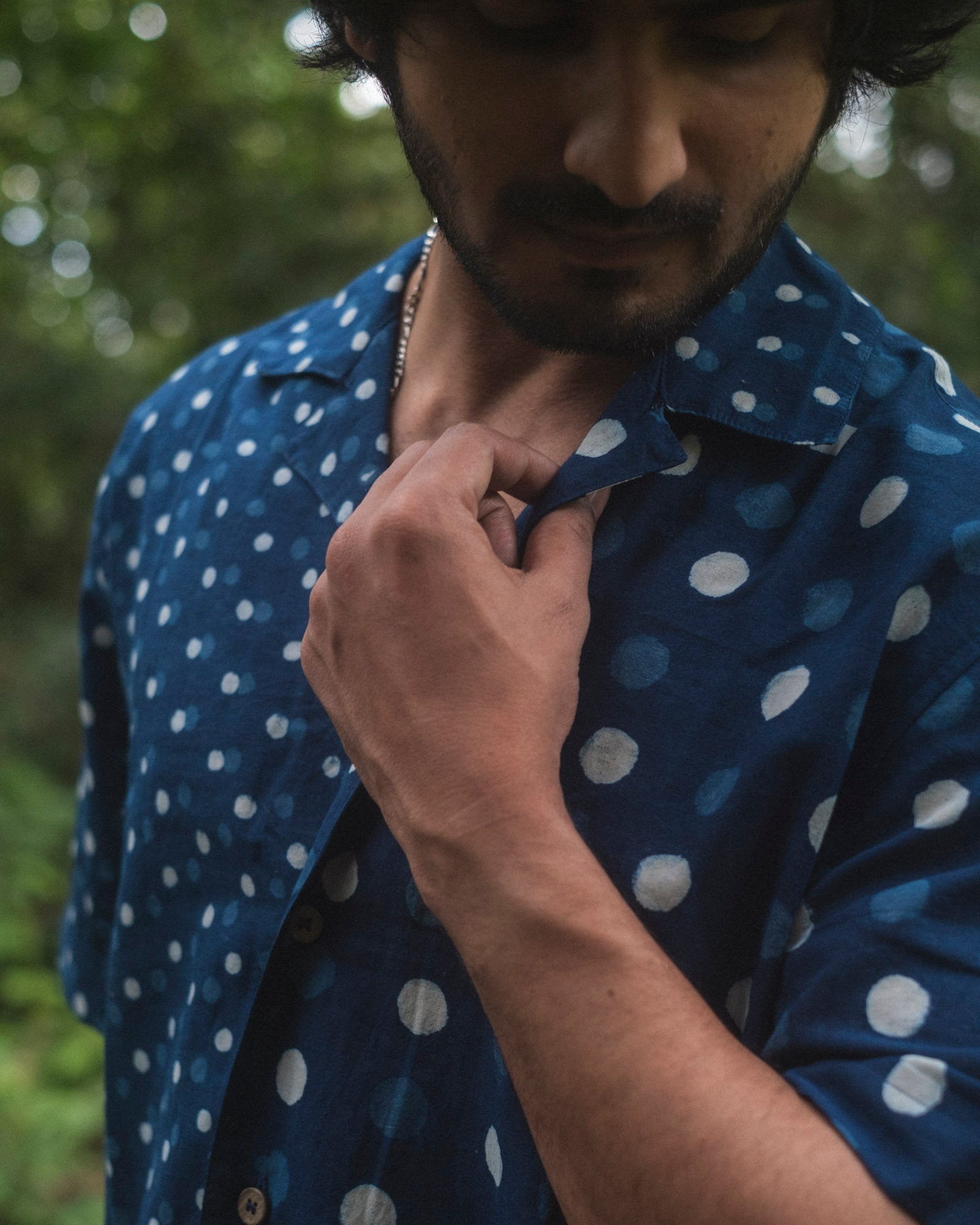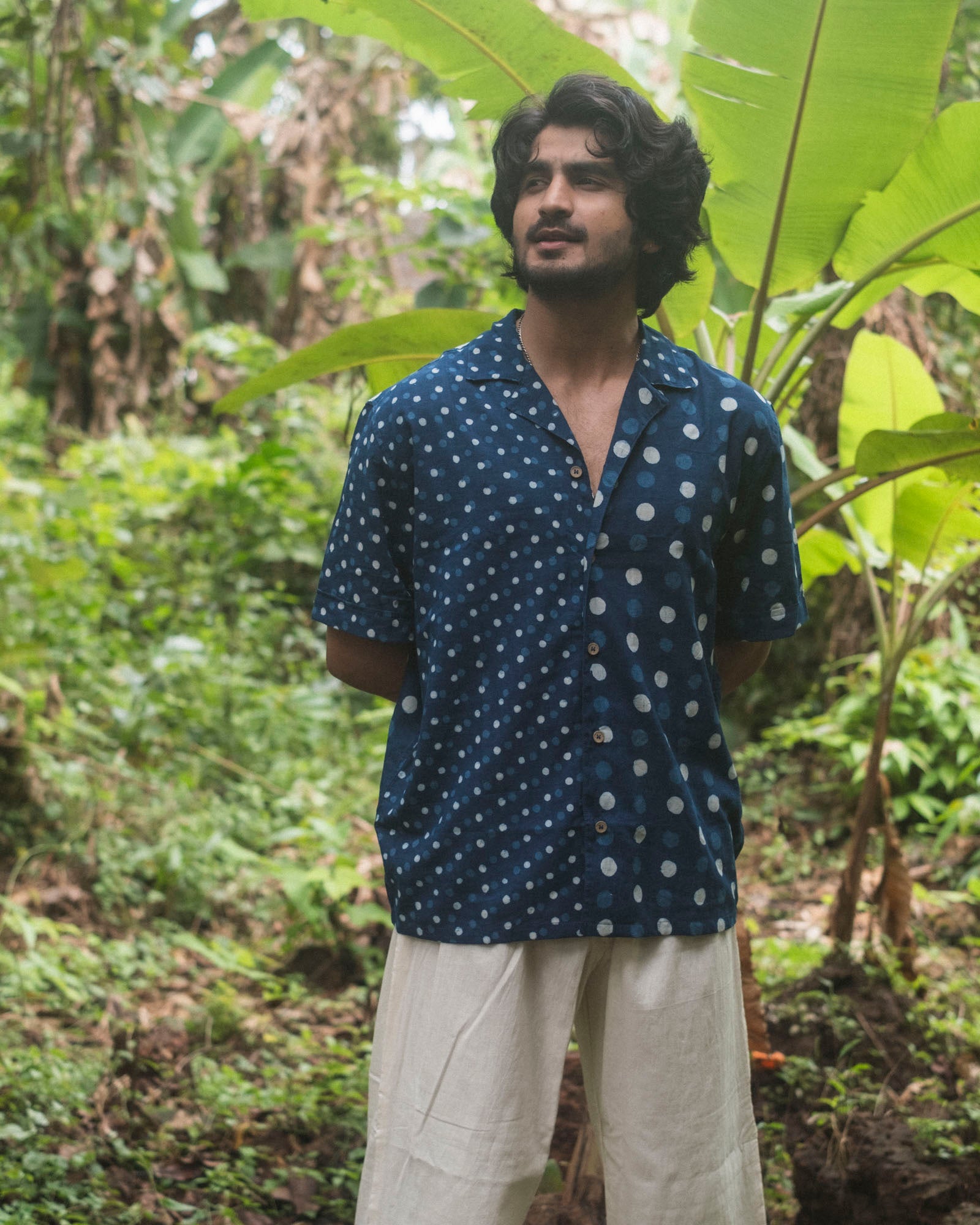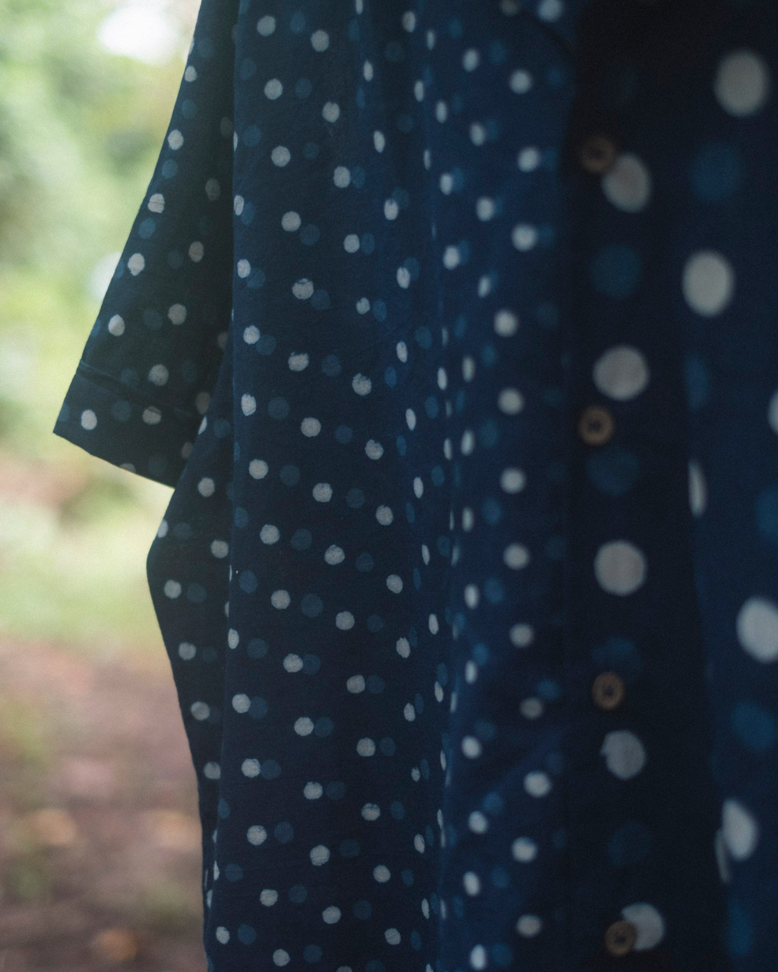Simple, calm, and sure. The Indigo Shirt is hand block-printed with vertical indigo lines that flow like waves meeting the shore. Each piece is dyed naturally with indigo using the Dabu resist technique, giving every shirt a quiet movement and balance.