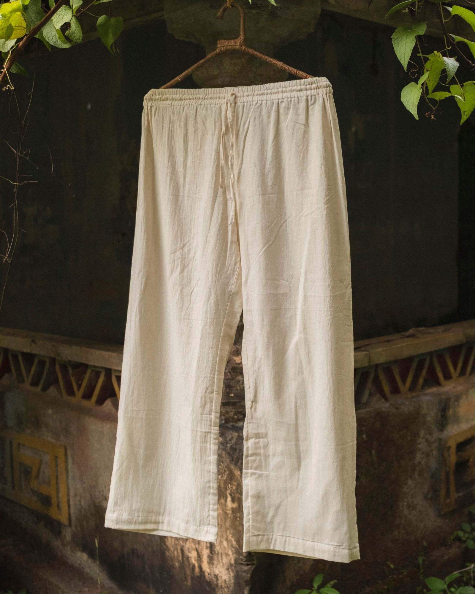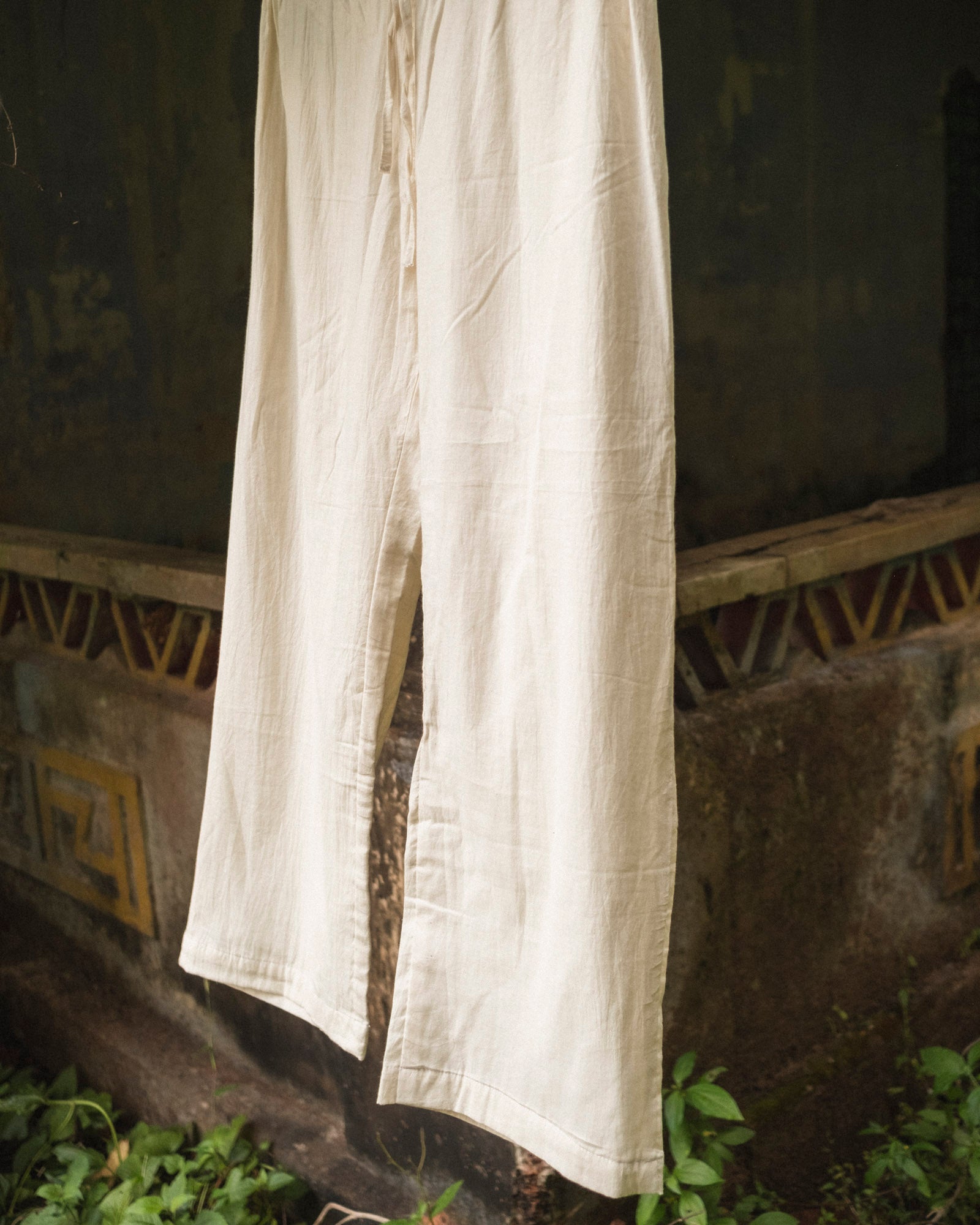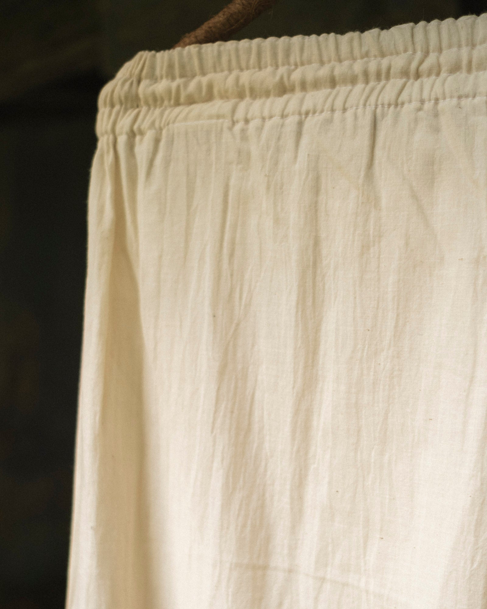 Soft as air and light on the skin. These unbleached organic cotton pants move with ease and breathe naturally. Relaxed, timeless, and designed for comfort that lasts beyond seasons. This pair is part of our LAL Design Studio Collection, shaped by the quiet rhythm of handmade work.