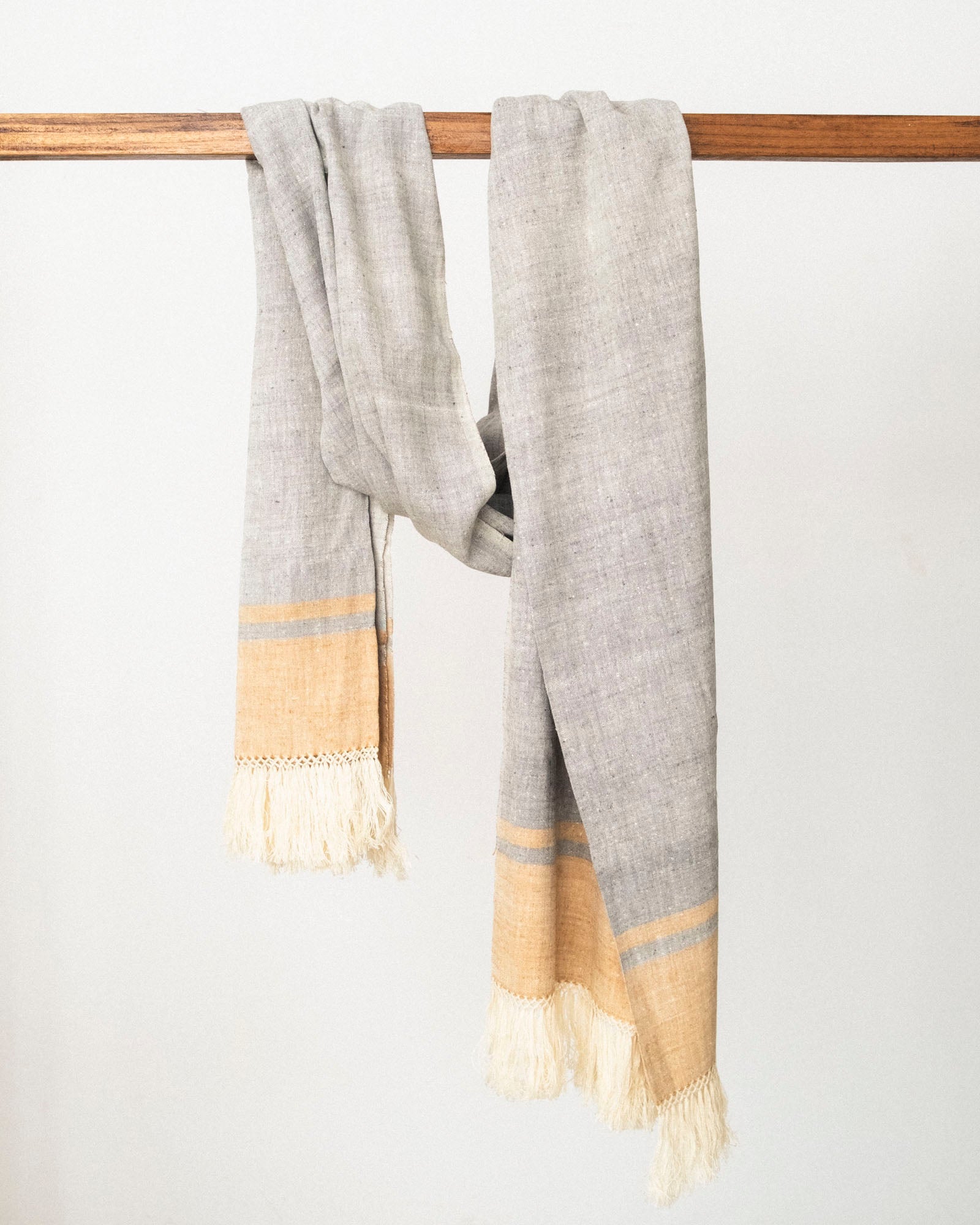 This shawl was handwoven by an all women collective in Meghalaya, India. We work directly with artisan groups who prioritize traditional craft, fair pay, and safe working conditions.