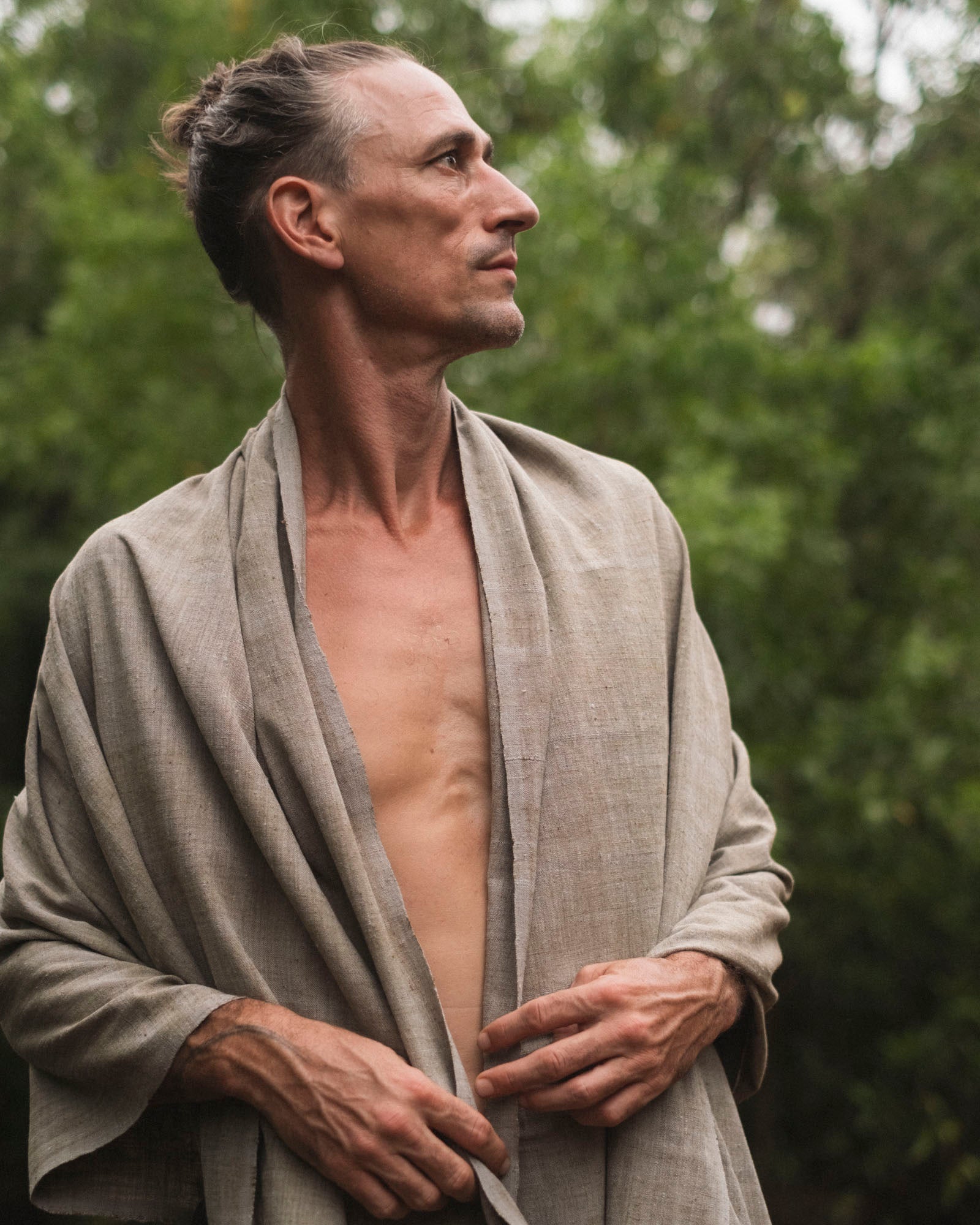 For a simple grounded pairing, style it with our Botanical Shirt Natural White, a plant-dyed layer that balances Tundra’s olive and cool gray tones.